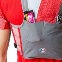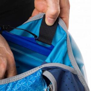 A 6 literes szemre kicsit nagyobbnak tűnik a gyári adatnál, a 12 literes meg kisebbnek. De menjünk szépen végig a zsebeken. Először is elöl ott a két zseb mindkét oldalon a soft kulacsoknak. Elvben ezt-azt a kulacs alá is be lehetne passzírozni, de én ezzel nem vesződnék, mert szinte garantált, hogy vízben, izóban fognak úszni azok a holmik a verseny végére. Ezután jön az a két tároló, amit könnyen elérünk futás közben is. Bal oldalt egy picit kisebb cipzáras zseb (én itt géleket, szeleteket tartok) jobb oldalt pedig egy nyitott, de nagyon mély és rugalmas zseb nagyobb, de könnyebb holmiknak (pl. szélkabátnak, kesztyűnek). A két zseb egész nagy és könnyen elérhető, de pl. az én böhöm nagy és nehéz 6 colos telefonomat egyikbe sem tudom betenni.